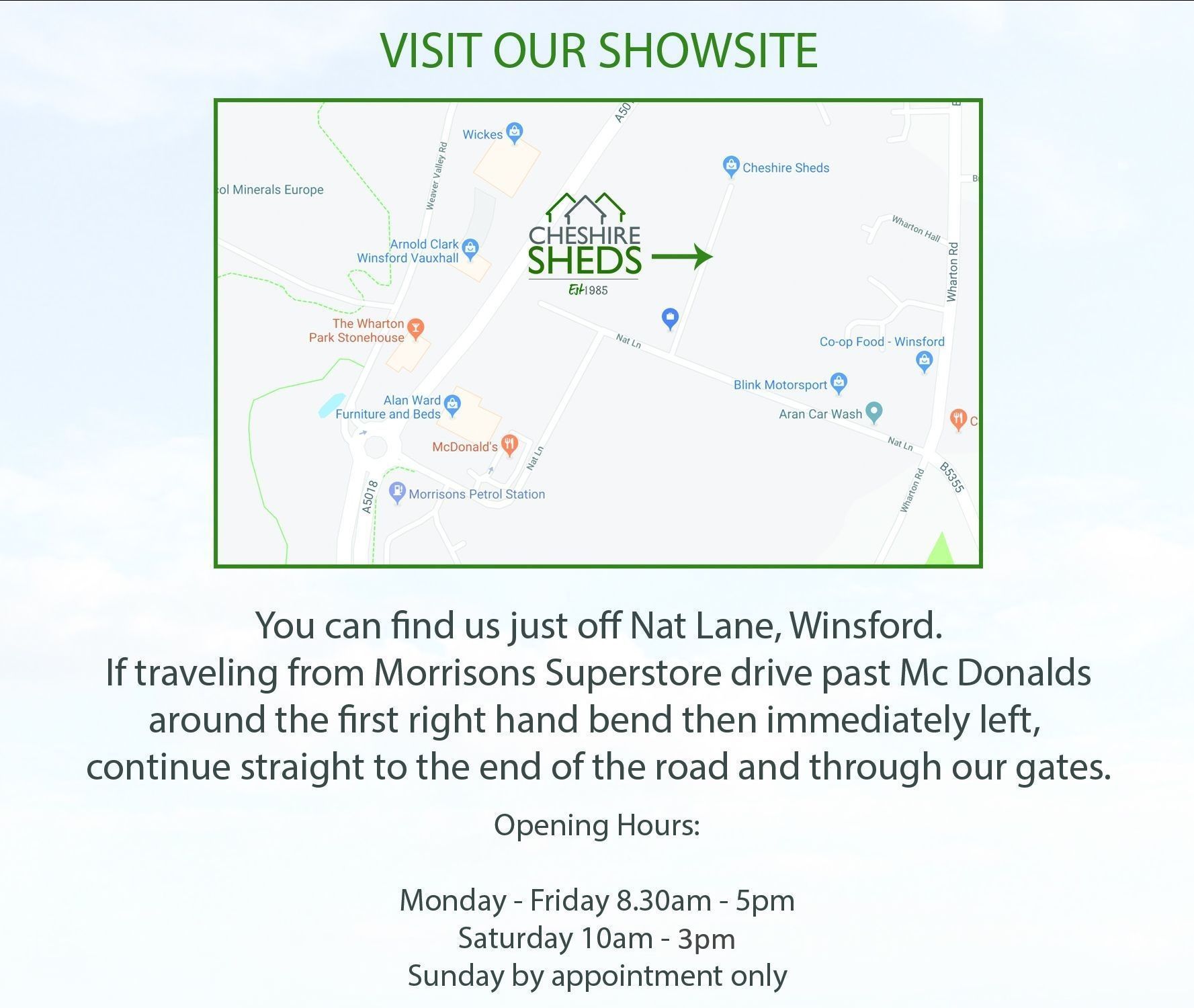 Thank you for contacting Cheshire Stables. We have received your form and a member of our team will be in touch with you as soon as possible. Our opening hours are: Monday to Friday, 8:00 AM to 5:00 PM, and Saturday, 10:00 AM to 4:00 PM. We are closed on Sundays.